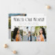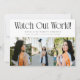 Modern and minimal graduation announcement photo card featuring 3 photos on the front and 1 on the back. The text at the top says "watch out world!" Add the graduate's name, information, and message to personalize this card.