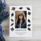 This whimsical graduation announcement has space for a single photo surrounded by watercolor graduation caps. Customize it with the grad's name, school, and graduation year. The back has a watercolor stripe pattern.