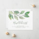 This botanical moving announcement card is decorated with minimalist watercolor greenery and stylish green script typography. Easily customizable. Original Watercolor © Michele Davies.