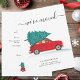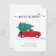 We've Moved Christmas Holiday Moving Announcement featuring a red car and Christmas tree with script and popular typography on white background.