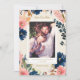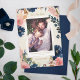As flores frescas, elegantes, de cor d'água, em azul vibrante marinho e cor-de-rosa pincelado doce, são acentuadas com dourados antigos macios. Estas fotos salvas as datas foram projetadas para combinar com nossa coleção de convites para casamento de Marinhos Elegância Selvagem, Blush e Dourado.