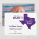 Anunciando o último bebê feito no Texas! Avise a todos quando seu sapo de chifres chegar com este anúncio clássico em cores escolares. Frente mostra o espaço para o nome do bebê e os detalhes de natalidade, junto com seus nomes. Voltar para a sua imagem horizontal. Também disponível em um layout vertical. Produtos correspondentes disponíveis.