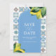Imaginem o romance da Itália capturado nos nossos belos anúncios de casamento de destino, adornada com uma charmosa fronteira de limões de aquarelas e o padrão de azulejo inspirado pelo Amalfi. O fascínio da Itália é repetido no sentido inverso, onde se desenrola um padrão de azulejo mesmerizador em tons de azul e ferrugem. Personalize essas belas cartas com facilidade, usando nosso modelo amigável para adicionar seus detalhes especiais. Escolha entre a conveniência das placas impressas ou a flexibilidade de uma impressão para salvar a data. Descubra um mundo de cartões salve a data encantadores e ideias inspiradoras em www.zazzle.com/dotellabelle. Cada design mostra a única arte aquática e design de Victoria Grigaliunas, fazer seu anúncio como uma verdadeira peça de arte.