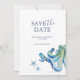 Estes anúncios de casamento de praia personalizados apresentam um polvo de aquarela com estrelas-do-mar em tons náuticos de azul. As palavras "Salvar a Data" são definidas em tipografia elegante. Use os campos de modelo para DIY (DIY) de suas informações personalizadas. Uma escolha única para os cartões de casamento costeiros. Para ver a coleção completa, visite www.zazzle.com/dotellabelle Arte e design de aquarelas únicas de Victoria Grigaliunas do Do Tell A Belle.