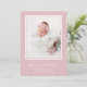 Os anúncios de nascimento elegantemente doces apresentam sua foto favorita de bebê recém-nascido em um fundo cor-de-rosa com um quadro cor-de-rosa - ou qualquer cor que você escolha para ambos, o nome do seu bebê, estatísticas de natalidade e seus nomes em qualquer cor e fonte que você quiser abaixo. No verso, altere a cor de fundo sob bolinhas brancas para qualquer cor que se ajuste à sua foto ou remova a camada de bolinhas. Você pode adicionar mais fotos no verso também!