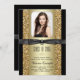 Bonito anúncio de graduação de brilho preto e dourado. Este belo anúncio de graduação em preto e ouro é facilmente personalizado com seus detalhes de fotos e eventos no estilo de fonte e cor, e com a redação de sua escolha. Você também pode mudar a cor de fundo neste anúncio elegante de graduação em preto e ouro.