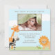 Adoráveis anúncios de nascimento de bebês com uma girafa, uma zebra, um leão e um adorável passarinho azul. Estúdio de cacau