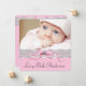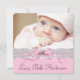 Adoráveis anúncios de nascimento de menina com renda rosa, laço, pérolas e foto. Este lindo anúncio de nascimento rosa e preto é facilmente personalizado com sua foto e detalhes adicionando sua foto, detalhes do evento, estilo de fonte, tamanho e cor da fonte e texto.
