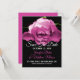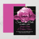 Anúncio de Save the Date de casamento lindo com uma fotografia de um desabrochar de rosa rosa coberta de orvalho, em um fundo preto. Personalize o texto para atender às suas necessidades. Ótima maneira de notificar todos com antecedência, do seu próximo casamento de destino.