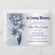Belo convite de anúncio de funeral e memorial em azul real naval e cinza prata com flores e espirais em azul bebê sobre um fundo cinza prata. Este belo anúncio de funeral e memorial azul é facilmente personalizado para o seu evento, bastando adicionar os detalhes do seu evento, o estilo da fonte, o tamanho e cor da fonte e a redação. Você também pode escolher o fundo da parte de trás que preferir, entre prata ou azul, simplesmente excluindo o que não deseja.
