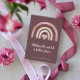 Anuncie a chegada do seu recém-nascido com estes bonitos cartões de anúncio do arco-íris "Fazer o mundo um lugar melhor desde (o ano)"!
