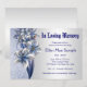 Belo marinho real azul e cinza prateada anúncio do funeral com flores azuis bebê e espirais em fundo de cinza prateada. Este belo memorial e anúncio de funeral azuis é facilmente personalizado para o seu evento, simplesmente adicionando detalhes do seu evento, estilo de fonte, tamanho de fonte e cor e texto. Você também pode escolher o fundo do lado de trás que preferir de prata ou azul simplesmente excluindo o que você não quer.