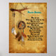 Poster de Bênção Apache com a rustica apanhadora de sonhos americana-indiana com miçangas de turquesa em fundo de pergaminho. Belo sentimento para desejar a um amigo ou amado. Autor americano do Apache indiano desconhecido