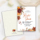 Ponha o tom para o seu chá de panela no outono com este incrível convite, com tons ricos de laranja queimada, burgundy, crimson red, terracotta e marrom. Perfeito para celebrar a noiva no calor da estação do outono, este convite captura lindamente a essência do outono com suas cores vibrantes e terríveis. Ideal para encontros confortáveis e comemorações íntimas, é a maneira perfeita de convidar seus entes queridos para um evento memorável.