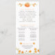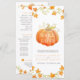 O outono cai no programa de casamento fino, com uma bela cor d'água de uma abóbora branca e vinha cardíaca ao redor das bordas, em cor laranja brilhante, vermelho e escuro e em cor laranja no branco e no texto inverso branco e preto no laranja. Personalize com o nome de sua noiva e noiva e a data do casamento ou evento, detalhes da cerimônia, festa noiva e mensagem de obrigado. Ideal para o seu evento de casamento outono. Outros tamanhos e itens de casamento correspondentes estão disponíveis. © Original hand watercolor painting e design por Sarah Trett para www.mylittleedenweddings.com exclusivamente no Zazzle.