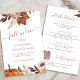 A moderna cor rústica da água bô flores botânicas, abóbora, folhagem e folhas secas fazer um barato de outono chic, tudo em um convite de casamento com um roteiro de caligrafia de caligrafia e paleta de cor bege de terracota. +++++++++++++++++ Personalize-o com todos os detalhes e o seu código QR para o seu Web site para RSVP online.