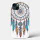 Arte de IA retratando um lindo apanhador de sonhos boêmio azul e marrom com contas e penas.