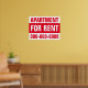Você tem um apartamento ou casa que gostaria de alugar ou vender? Este sinal de "Apartamento para aluguel" de 18" x 24" totalmente personalizável irá ajustado as suas necessidades específicas! Quer você esteja vendendo ou alugando uma casa ou um apartamento. Esta placa é ideal para anunciar prédios ou condomínios de apartamentos de dentro. Cada linha e cor de fundo pode ser alterada para qualquer ajustado da sua situação. Os descontos de quantidade estão disponíveis quando você comprar 4 ou mais do mesmo sinal!