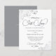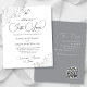 Estes simples convites para casamento são elegantes e na moda, enquanto ainda são amigáveis e baratos. Eles apresentam um design elegante com delicadas caramujos de folha de cinza prateada e espirais nos cantos e uma moderna escrita que diz: Nada de Rico, Apenas Amor. A parte traseira tem espaço para detalhes, assim como um código QR personalizável para direcionar facilmente seus convidados para o site de casamento para obter mais informações e/ou RSVP. Uma bela maneira de convidar seus amigos e família a compartilhar sua alegria no seu dia especial.