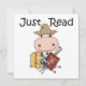 Leia T-shirts, capuzes, canecas, cartões, autocolantes, botões, ímãs, mousépias, jornais, guardas e outras roupa de leitura e presentes que promovem a leitura de uma forma fofa! Uma vaca com chapéu de palha e garfo de jarra descansa contra um fardo de feno com um livro!