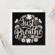 Respire o cartão. A mentalidade da saúde mental pratica flores florais, flores negras, decoração de pequenos impressões. Respire fundo no treinador de professores de meditação de ioga calmando ansiedade, citando um lembrete respiratório para as meninas.
