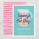 Convites de aniversário de verão bonitos apresentam um jarro de limonada cor-de-rosa gelada em um estilo vibrante de arte-pop, com "apertar o dia" sobreposto na letra de roteiro azul marinho. Personalize com seus detalhes de festa de aniversário em branco na turquesa de verão.