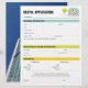 Um formulário de pedido de aluguer profissional para os proprietários darem aos potenciais inquilinos a preencher. Excelente para proprietários que arrendam casas, caves, condomínios, apartamentos e salas para arrendamento ou arrendamento. Todos os títulos de campo são editáveis e as caixas de campo também podem ser movidas para que o formulário funcione para suas edições. Se você for uma empresa, a imagem da casa no canto superior direito pode ser substituída pelo logotipo no Editor. O verso da página tem uma imagem de cheio para que você substitua pela sua própria imagem de propriedade de aluguel.