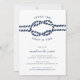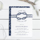 Nossos convites de brunch de posto de chic costeiro apresentam estilo náutico clássico em azul marinho e branco. "Depois que o nó está amarrado" aparece no topo, curvado em torno de uma ilustração de corda azul-marinho. Personalize com seus detalhes de brunch de casamento embaixo de uma combinação chic de serif e sans serif lettering. Perfeito para náuticas, temas de praia ou brunches de verão. Cartões que se revertem a um padrão de corda náutica de looping, de cor branca, em marinho.