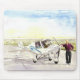 Apenas aterrado após um vôo agradável do treinamento acima da costa norte e do campo bonitos de Cornualha, Reino Unido. (O avião é um microlight de C42 Ikarus). Do watercolour original por Christine Hudson.