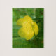 Enterrado na grama verde alta, está um borboleta amarelo ensolarado cintilante com gotas de chuva frescas.