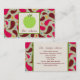 Um cartão de visita do professor que caracteriza uma ilustração de uma maçã verde dentro de um quadrado com guarnição verde na parte dianteira. O fundo na parte dianteira e na parte traseira é paisley. Personalize o texto na parte dianteira e na parte traseira.