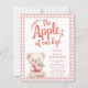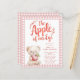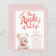 Maçã do nosso Chá de fraldas de Urso Gingham Rosa. Um orçamento com um preço menor de 4,5 x 5,6" semibrilho de 110 lb, semelhante em espessura a um cartão postal. Há um por folha. Um doce ursinho segurando uma maçã, e um fundo cor-de-rosa de gingham, com uma tipografia artística para a Apple of our Eye. Personalize facilmente o resto das palavras conforme necessário.