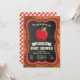 Encontrem seus convidados com este chá de fraldas bonito, convidando com uma adorável maçã com elementos vibrantes contra um quadro e fundo de madeira. Basta adicionar os detalhes do seu evento neste modelo fácil de usar para torná-lo um convite de tipo único. Sacudir a carta para revelar um padrão elegante de gingham vermelho na parte de trás da carta.
