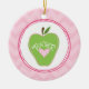 Um ornamento para os professores que caracterizam uma ilustração de uma maçã verde decorada com um coração cor-de-rosa e um texto branco "PROFESSOR." O fundo é ziguezague cor-de-rosa no rosa.
