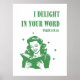 Arte cristã de inspiração retrógrada, com uma mulher alegre lendo a Bíblia, em uma cor verde rica, combinada com a escritura "Eu encanto a sua palavra" (Salmo 119:16). Perfeito para amantes de livros, espaços de orações, ou como um dom cristão único.