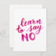 Aprenda a não dizer nenhuma citação inspiradora. Citação inspiracional rosa escrita à mão sobre cartões