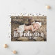 Anúncio de bebê na moda com tipografia branca com estilo escovado com padrão de pontos de confetti cor-de-rosa, preto e cobre.