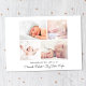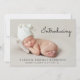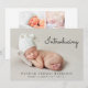 Um anúncio de nascimento de fotos moderno mínimo para anunciar a chegada do seu bebê à família e aos amigos. A foto de seu recém-nascido preenche a frente da placa e é sobreposta a "Introdução" em um script contemporâneo (você pode mover este texto para outra área na placa dependendo da foto selecionando para editar na ferramenta design). Adicione o seu nome, a data de chegada e as estatísticas de nascimento abaixo. No verso, adicione quatro fotos adicionais, uma mensagem "bem-vinda" e os nomes dos pais e irmãos.