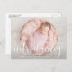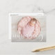 Apresentando Anúncio de Nascimento com Foto e Sobreposição de Letra Manuscrita | Celebre e apresente seu novo bebê com este anúncio de nascimento personalizável com foto. Ele apresenta sobreposição de letra manuscrita e padrão de damasco com tinta rosa.