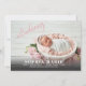 Os anúncios de nascimento elegantemente doces apresentam sua foto favorita de recém-nascido em sangria de cheio, nome do bebê, estatísticas de natalidade e seus nomes em branco (ou qualquer cor e fonte que você queira) e duas camadas de gradiente de cinza para escolher colocar sob seu texto, se necessário, para que seja fácil de ler. Altere a cor de fundo para qualquer cor que se ajuste à sua foto e use ou exclua a camada de rosas. Você pode adicionar mais fotos no verso também!