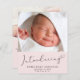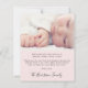Um simples e fofo anúncio de nascimento de uma menina rosa e pastel. A frente apresenta a foto de seu recém-nascido, o nome do cheio, a data de chegada e as estatísticas de nascimento, e "Apresentando" escrito em um roteiro de na moda terminando com um coração florescente. No verso, você pode adicionar uma foto adicional, nomes de pais e irmãos, e um obrigado, visitação ou outra mensagem.