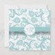 Monograma Novo Tamanhos Elegante Vintage Aqua Blue Damask Swirls Fita Convite De Casamento