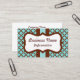 Um padrão de chocolate escuro decora esta cartão de visita de padrão aqua. Personalize esta cartão de visita para atender às suas necessidades. O design é de arte original. Use este cartão de visita de na moda para um compro de massa, chocolate gourmet, café, restauração, cama e café da manhã, boutique, padaria, padaria, compro de café, design de interiores, antiguidades, salão, spa, cosmetólogo, etc..