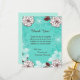 Aqua e Flores Marrons 4x5 Cartões de agradecimento