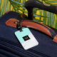 Etiqueta de bagagem moderna e na moda com fundo azul aqua com mármore branco e cinza. Este monograma de bagagem será perfeito como presente de formatura. Outras cores estão disponíveis.