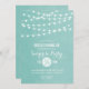 Design de convite de aniversário de verão moderno em chic com simples luzes de cordas brilhantes e elegantes penduradas no topo e uma mistura elegante de fontes modernas e caligráficas em um plano de textura de cor aquática falsa impresso. Um design de pré-disquete simples e na moda, perfeito para o verão! Clique no botão PERSONALIZAR TI para personalizar fontes, mover texto e criar seu próprio design de convite exclusivo.