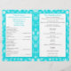 Este programa de casamento turquesa e flocos de neve brancos de 8,5"x11" tem uma fita azul aqua FAUX e um medalhão de flocos de neve nela. Corresponde ao convite de casamento e a outros itens mostrados abaixo. Ele foi projetado para ser dobrado pelo centro. Todo o texto é personalizável. ****POR FAVOR, OBSERVE que o papel de mais alto é um estoque de cartão e não se dobra bem. Envie um e-mail para niteowlstudio@gmail.com se precisar de assistência para a personalização ou se tiver perguntas ou solicitações. <