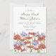 Convite romântico para o casamento de verão, com flores de campo de cor d'água/ flores silvestres e grama. Flores como papoila vermelha e flores azuis.