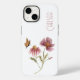 Flores silvestres cor-de-rosa-menina com borboleta pavimentada. Personalize-o com um nome feito em uma tipografia de estilo sans serif ultra-moderna. Bonito design cor-de-rosa sobre fundo branco. Simplicidade no seu melhor.