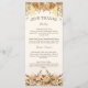Elevem seu banquete de Ação de Graças com este charmoso menu de aquarela com cones de pínus complexos e flores delicadas. Perfeito por adicionar um toque de elegância rústica à sua mesa de férias. Este modelo de menu é fácil de personalizar com os seus próprios pratos e informações dietéticas.
